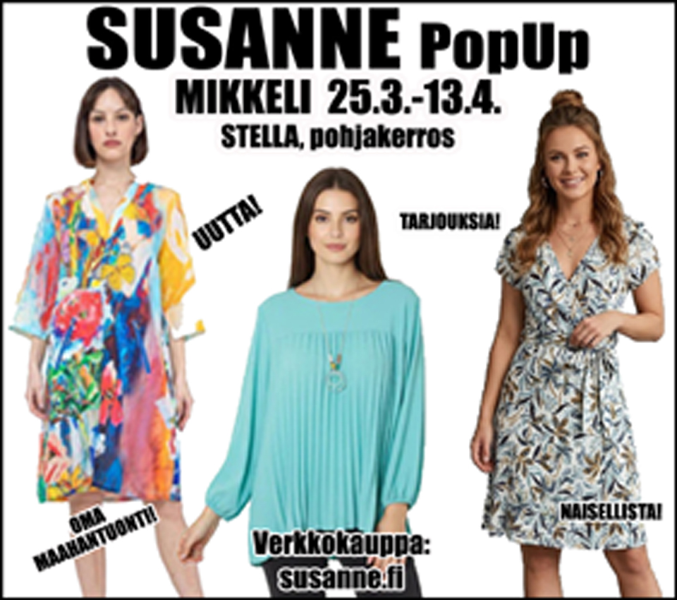 Naistenvaateliike Susannen pop up Stellan pohjakerroksessa ke 25.3.-ma 13.4.