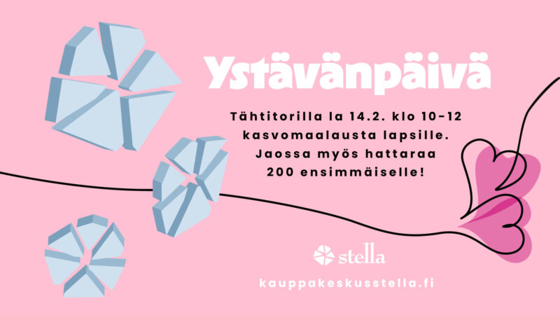 Ystävänpäivää vietetään lauantaina 14.2. ja ystävänpäivän kunniaksi Kauppakeskus Stellan Tähtitorilla on tarjolla lapsille ilmaisia kasvomaalauksia sekä hattaraa 200 ensimmäiselle. Lisäksi Tähtitorilla järjestetään Luna Livingin Pop Up, jossa on esillä ja myynnissä myymälän uutuusbrändi Nakoan tuotteita.