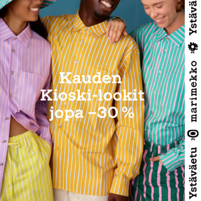 Ikonisia raitoja, rohkeita kukkia ja rentoa tyyliä. Nyt koko Kioski-valikoima –30 %, kun ostat yli 100 €:lla. Nappaa suosikkisi.